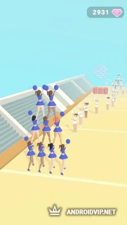 Помимо уворачивания от различных преград, вам так же нужно успевать собирать красочные алмазы, которые затем можно использовать для покупок в магазине. Приобретайте красивые скины и костюмы для своих черлидерш, делая внешний вид команды по-настоящему уникальным. Проходите сотни разных препятствий и испытаний, выполняйте задания и открывайте доступ к новым уровням.