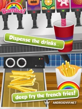 Пробивайте заказы на кассе, дарите к ним приятные сюрпризы в виде загадочных игрушек и подарков для детей. Так же вы можете побыть на месте клиента и заказать сочный бургер, колу и любимую картошечку. Здесь есть более 12 видов напитков и множество различных рецептов, которые вы сможете сами придумывать каждый раз добавляя что-нибудь новое. Игра отлично подойдёт для детей от 2х лет, которые смогут быстро освоить управление, и весело провести время.