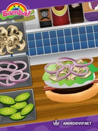 Bamba Burger - это интерактивная развивающая игра для детей от студии Mezmedia. Станьте владельцем весёлого фаст-фуд ресторанчика, в меню которого есть как классические бургеры, так и самые необычные блюда в виде радужной газировки и сока единорога. Добавляйте в меню новые виды блюд, угощайте гостей ресторана и создавайте приятную атмосферу!