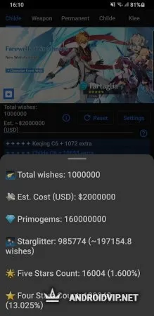 Genshin Impact Wish Simulator - это уникальное приложение, созданное по мотивам популярной одноименной игры, где вы сможете загадывать различные желания. Для вас здесь собраны все игровые предметы, артефакты и другие ценные вещи. К тому же, в программе вы встретите уже давно знакомых персонажей, с которыми предстоит взаимодействовать!