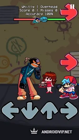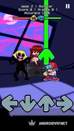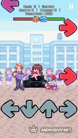 Каждый игровой этап представлен в виде недели музыкальных соревнований с разными противниками. Всего в игре 7 недель, включающих в себя по три песни на каждом этапе. Вам необходимо сражаться с недоброжелателями, желающими разлучить вас с девушкой. Нажимайте на стрелочки в нужное время, чтобы попасть точно в такт музыке и удерживайте нажатие во время длинных нот. Чем точнее вы будете попадать в ритм, тем больше очков получите за своё исполнение.