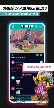 LEGO VIDIYO - это интерактивное социальное приложение с функцией музыкального видеоредактора для детей от LEGO. Создавайте креативные видео с минифигурками из конструктора LEGO Bandmates, которые можно оживить при помощи функции дополненной реальности. Кастомизируйте свои фигурки и собирайте целую коллекцию персонажей всех музыкальных жанров, чтобы делать с ними яркие видеоролики, и делиться ими с другими пользователями!