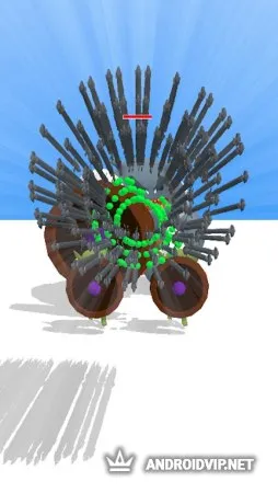 Игровой процесс довольно прост, ваша главная задача - метать оружие и наносить врагам критический урон прежде, чем они сумеют добраться до вас. Перед каждым врагом вы сможете выбрать своё оружие нажав на экран в тот момент, когда индикатор на экране проходит именно над нужным вариантом. Запускайте в сторону врага одно копьё и тапайте по экрану, чтобы увеличить его количество в несколько раз и нанести врагу урон.