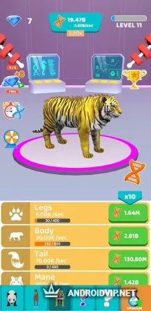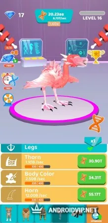 Idle Animal Evolution - это занимательная аркадная игра с элементами кликера, в которой вы сможете проводить интересные и необычные эксперименты. Комбинируйте разные виды животных, чтобы выводить совершенно уникальных новых особей, которые ещё не известны науке. Выбирайте двух животных, кликайте и наблюдайте за тем, как у вас на глазах появляются необычные существа!