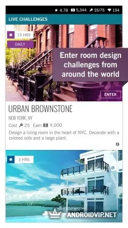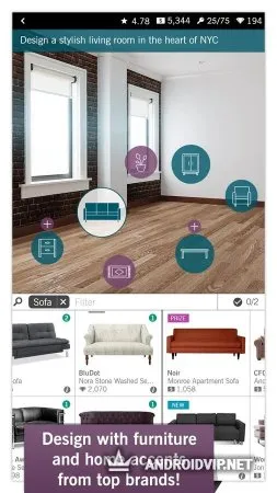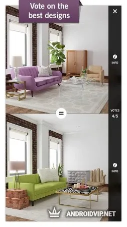 Design Home - примените все свои дизайнерские амбиции в этом приложении, которое позволяет моделировать интерьер комнат в качественном трёхмерном изображении. Экспериментируйте с фурнитурой и декором чтобы создать ту обстановку, которую вы хотите. Приложение сотрудничает с ведущими брендами мебели, так что вы сможете подобрать любой элемент по своему вкусу.Также, вы можете смотреть на работы других пользователей и голосовать за их проекты и наоборот - демонстрировать свои варианты интерьера всему миру. Воплощайте свои самые смелые идеи в жизнь!