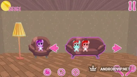В вашем доме появились милые питомцы, которые оказались довольно непоседливыми. Вам необходимо воспитывать их и всячески заботиться - купать, умывать, кормить и укладывать спать. Помимо обычных ежедневных обязанностей, вы так же сможете играть со своими маленькими питомцами находя весёлые игры и занятия, которые порадуют всех детишек.