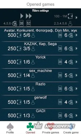 Колоды тут бывают двух видов: по 36 и 52 карты, а также участники могут иметь одновременно в руках 4 или 6 карт. От изменения таких параметров игровой процесс может кардинально перемениться, что прибавляет разнообразия. Стоит отметить, что во всех играх используется лишь виртуальная валюта, а пополнить её можно бесплатно, раз в определённый промежуток времени!
