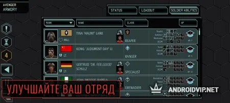 Добывайте разные ресурсы и артефакты для развития, и выполняйте миссии получая награды. Сражения имеют пошаговую систему боя, а все задачи решаются командой из нескольких бойцов. Игра отлично оптимизирована для Android-устройств и имеет тщательно проработанный интерфейс, который создаёт удобные условия для пользования. Примите участие в самой важной войне в истории человечества и верните мир на Землю!