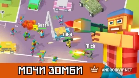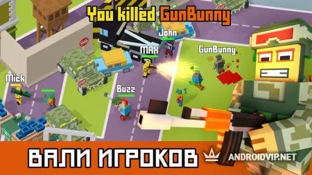 Pixel Arena Online: Multiplayer Blocky Shooter - угловатая пиксельная графика наращивает популярность с каждым днём, и несмотря на то, что всем известная игра-основоположник этой идеи вышла далёких 8 лет назад, множество игровых студий стараются воспользоваться этой идеей и выпустить свой оригинальный проект. Так и студия Askella Apps долго не тянула и представила вниманию геймеров экшен с видом сверху, в котором ваша задача - выжить, отстреливаясь от пресловутых зомби и других игроков. Конечно, отбиваться от них мы будем не голыми руками, а большим арсеналом всевозможного оружия, среди которого можно найти дробовик, АК-47, бензопилу и даже огнемёт. Так что, разгуляться в этом плане есть где, поэтому вооружайтесь мощной пушкой и выходите на поле боя, убивать всех, кого увидите.