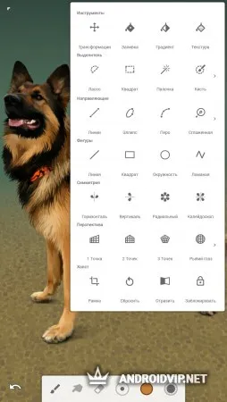 Здесь представлены самые разнообразные инструменты - десятки пресетов для кистей, элементы цветокоррекции, наложение слоёв и другие. Используйте их, чтобы сделать процесс рисования более удобным и создавать по-настоящему красивые цифровые картины на своём Android-устройстве.