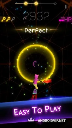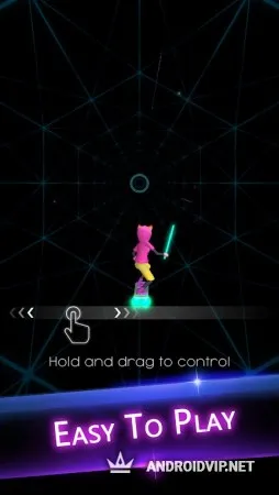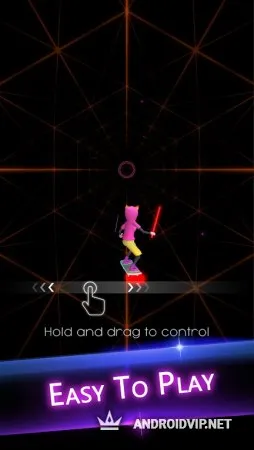 Игровой процесс довольно прост, для начала вам нужно выбрать одну из представленных музыкальных композиций, после чего можно приступить к основному геймплею. Ваш герой - серфер, бороздящий просторы музыкальной вселенной и его главная задача сбивать фигурки попадая точно в ритм музыке. Нажимайте на экран и удерживайте нажатие указывая сёрферу нужное направление. Вам необходимо сбивать только фигурки определённого цвета, которые будут совпадать с цветом вашего героя.