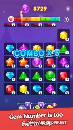 Gem Number - это классическая головоломка три в ряд с казуальным геймплеем. В этой игре вы сможете увлекательно провести ваше время, так как здесь практически отсутствуют всяческие ограничения и сложные уровни, вам предстоит лишь собирать разноцветные самоцветы и постараться набрать как можно больше очков, чтобы поставить рекорд!