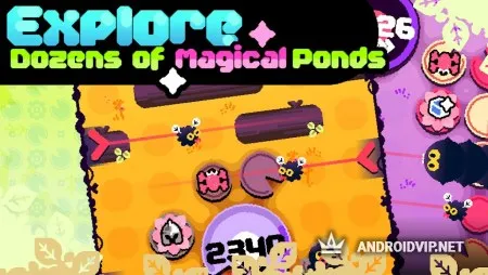 Находите разные усилители, дающие вам преимущество на игровом поле, улучшайте свои способности и устанавливайте новые рекорды. Открывайте красивые скины, которых здесь представлено более пятидесяти и соберите из них целую коллекцию ярких и забавных образов. Каждая локация имеет красочное визуальное оформление и оригинальный стиль. Пройдите все уровни, исследуйте большое количество прудов с интереснейшими и неожиданными испытаниями.