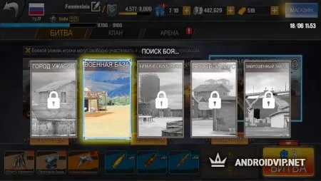 Сражения в игре проходят на совершенно разных локациях, где вы встретите немалое количество городских местностей, открытых участков, лесов и так далее. Также, есть несколько игровых режимов помимо стандартных рандомных боёв, в которых можно собираться в специальные команды и выстраивать тактики сражения при помощи удобного чата!