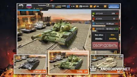 В начале игры в вашем распоряжении будут более простые модели такнов, среди которых найдёте ранние модели легких и средних танков. На них вы сразу же сможете выехать на поля сражений и испытать их в деле. Постепенно вы будете набирать очки опыта и деньги, с помощью которых получится открыть более мощные тяжёлые танки, противотанковые самоходные артиллеристские установки и многое другое. К тому же, есть возможность устанавливать на них различное оборудование и модули, что заметно увеличит вашу эффективность.