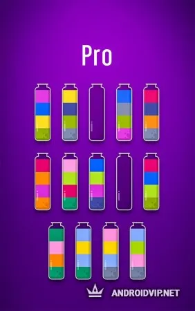 Каждый уровень игры представлен в виде головоломки, решив которую вы сможете перейти на следующий, более сложный этап. У вас есть несколько ёмкостей заполненных разными цветами и ваша задача сделать так, чтобы в каждой ёмкости оказалось не более одного цвета. Для того, чтобы добраться до нижних цветов, вам нужно убрать верхние, поэтому поочерёдно переливайте цветную жидкость пока не добьётесь нужного результата.