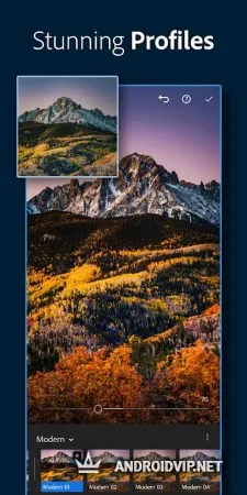 Используйте уже готовые пресеты, представленные в приложении для мгновенной обработки фото или настраивайте цвета вручную при помощи микшера. Исследуйте возможности расширенной цветокоррекции, настраивайте чёткость изображения, резкость, контраст и экспозицию. Получайте интерактивные руководства и советы по ретуши. Систематизируйте свои фотографии, разделяйте их на альбомы и оценивайте лучшие. Так же у вас будет возможность присоединиться к сообществу активных пользователей, получать персонализированный контент, новые пресеты и подписываться на других создателей.