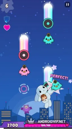 Следите за уровнем жизни своего героя, который отражается на шкале внизу экрана и ловите сердечки, чтобы восстанавливать здоровье. Так же не забывайте собирать ноты, дающие вам дополнительные очки. Удерживайте нажатие, чтобы попасть в длинные ноты и быстро тапайте по экрану для уничтожения больших монстров. Открывайте новых героев, выполняйте ежедневные задания, получайте достижения и наслаждайтесь динамичным геймплеем.
