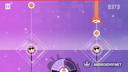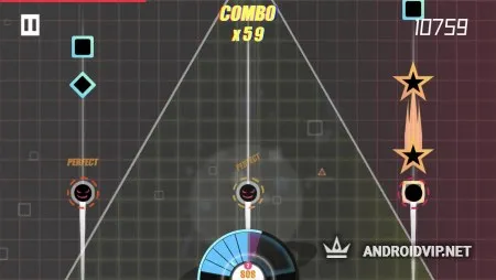 Следите за шкалой прогресса внизу экрана и старайтесь заполнить её, чтобы получить максимальное количество очков. Игра имеет классическую механику музыкальных аркад, поэтому освоить её будет довольно просто. Сложность геймлея отличается в зависимости от выбранного трека, чем быстрее и динамичнее музыкальная композиция, тем сложнее будет вовремя попадать в ритм.