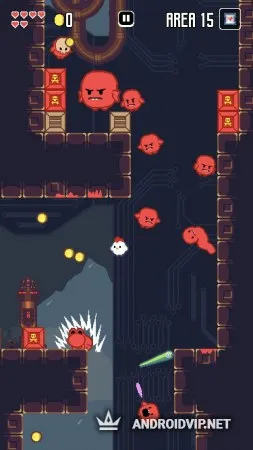 Управление здесь довольно простое - левая сторона экрана отвечает за прыжки влево, а правая, соответственно, за прыжки вправо. Использовать имеющийся в вашем арсенале элемент можно проведя пальцем вверх. Задействуйте предметы окружающей среды, чтобы уничтожать врагов и защищаться. Так же вы будете получать ежедневные задания, выполнив которые можно получить дополнительные монетки.