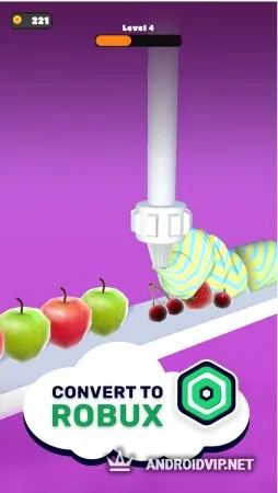 Colorful Topping - Free Robux - Roblominer - это красочная казуальная аркада, которая порадует пользователей не только простым и увлекательным геймплеем, но и отличной возможностью получить виртуальную валюту "Robux". Вам необходимо лишь нажимать на экран, чтобы поливать фрукты топпингом и зарабатывать алмазы, которые затем можно будет обменять на робуксы.