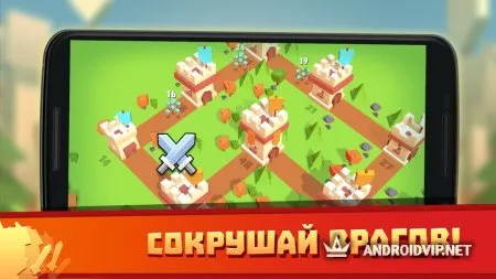 Начинайте захватывать одну башню, в которой уже есть свои воины, и как только игрок сможет заполучить ее под свое командование, то все вражеские солдаты автоматически станут вашими. И так с каждым захватом вы будете пополнять не только свою армию и боевую мощь но и расширите королевство. Но не забывайте, что настоящие враги нападают не сразу, а ждут подходящий момент.