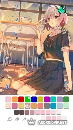 Если вы любите аниме, красивые картинки и медитативный процесс раскраски, то это приложение отлично вам подойдёт. Вам вовсе не обязательно уметь рисовать, ведь здесь уже собраны различные готовые шаблоны с картинками, которые можно сделать цветными и красочными применив свою фантазию и чувство стиля. Используйте широкую палитру цветов, закрашивайте разные области изображения и получайте яркие результаты, которые можно будет сохранить в галерею.