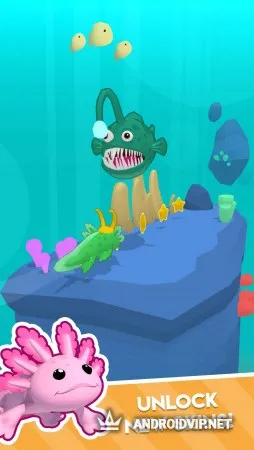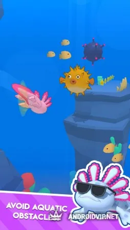 Воды океана таят в себе много опасностей и неожиданных встреч с разными обитателями, поэтому вашему герою аксолотлю нужно быть предельно осторожным. Исследуйте глубоководную поверхность на предмет полезных предметов и избегайте столкновений с различными препятствиями в виде коралловых рифов, подводных скал, мин, якорей и других подвижных и не очень объектов.