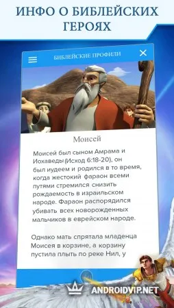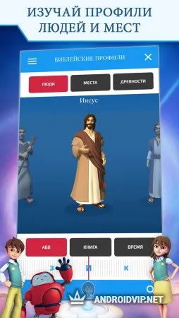 Благодаря этому приложению каждый ребёнок получит возможность открыть для себя мир Библии и не только узнать много нового, но и провести время весело и интересно. Здесь есть несколько разделов, в каждом из которых собрано множество полезной информации. Почитайте Библию на понятном языке, сделайте себе заметки и обратитесь к разделу вопросов, если вас что-то волнует. Ознакомьтесь с профилями библейских героев, узнайте информацию об исторических местах и соберите коллекцию любимых стихов.