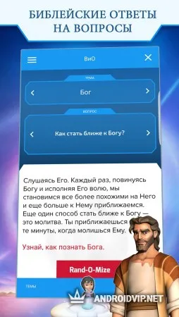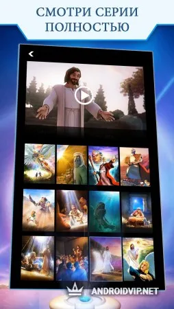 Одним из самых полезных и масштабных разделов для изучения является собрание из 39 серий популярного мультсериала «Суперкнига». Так же здесь есть множество интерактивных заданий, мини-игр и викторин на библейскую тематику. Подстраивайте приложение под себя меняя шрифт и его размер, фоновое изображение и дизайн. Изучайте всю самую важную информацию при помощи наглядных материалов, увлекательных игр и других полезных материалов.