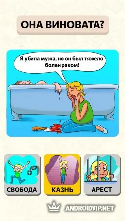 Be The Judge - Суди Всех: Тест Мозга - это весёлая и немного сумасшедшая головоломка, ведь здесь вам предстоит стать настоящим вершителем судеб и судьёй, раздающим наказания и помилования за считанные секунды. Какой участи заслужил подозреваемый и виноват ли он в содеянном? Применяйте своё логическое преступление, разгадывайте тайны, наказывайте виновников и выносите оправдательные вердикты.