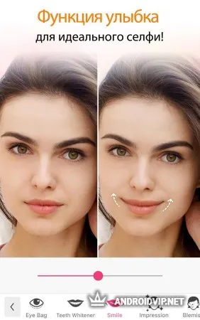 Приложение является не просто фоторедактором, в котором есть базовый набор инструментов работы с цветом, яркостью и готовые фильтры, а настоящий виртуальный салон красоты, где имеются десятки самых разных функций для качественной ретуши и обработки селфи. Благодаря функции ИИ вы сможете делать отличные снимки в режиме реального времени при помощи специальной бьюти-камеры или же редактировать их после создания снимка.