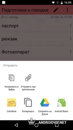 Любую из ваших заметок можно переместить на домашний экран в качестве виджета, стилизованного под канцелярские стикеры, чтобы всегда иметь к ним быстрый доступ. Настраивайте фон и цвет каждой заметки, редактируйте их, вычёркивайте ненужные пункты из списков или удаляйте. Сортируйте их по удобным параметрам или воспользуйтесь функцией поиска. Синхронизируйте данные между другими устройствами и сохраняйте резервные копии.