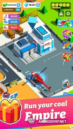 Постепенно у вас появится возможность разблокировать другие карты с ещё неисследованной местностью, а так же открыть новые способы добычи ресурса. Приобретайте новые здания, стройте офисы, улучшайте технику и увеличивайте производительность. Управляйте угольной отраслью и улучшайте свои показатели, чтобы выйти на мировой уровень.