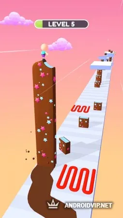 По мере прохождения сложность уровней будет увеличиваться, а так же откроются новые сорта сладкого десерта - сливочные, шоколадные, фруктовый лёд, с красочными присыпками и другие. В конце каждой трассы вас ожидает настоящая проверка и чем выше будет ваша конструкция из мороженого, тем больше бонусов и игровых монет получится заработать.