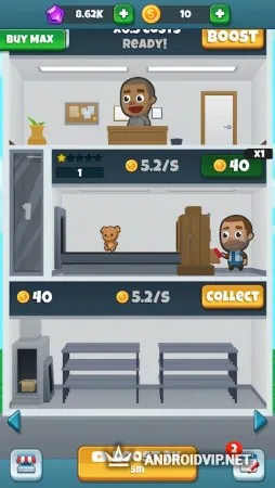 Доведя процесс заработка до автоматизма вы сможете увеличить доход в два, три или даже в десять раз. Вкладывайте полученные средства в найм новых работников и покупку различных усилителей. Выполнив все миссии и достигнув максима развития на данном этапе вы разблокируете новый уровень с совершенно другой эпохой.