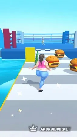 Готовы помочь героине прийти в наилучшую физическую форму? На каждом уровне вам необходимо пройти трассу с препятствиями, которая по-настоящему испытает ваши рефлексы и скорость реакции. Нажимайте на экран и направляйте свою героиню в нужную сторону. Собирайте в пути разные предметы, которые будут менять ваше физическое состояние. Огурцы сделают вас худее, а вот гамбургеры помогут набрать несколько килограмм.