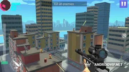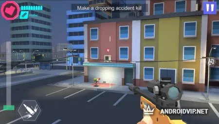 Нажимайте и перетаскивайте нажатие по экрану, чтобы изменить угол обзора камеры, а так же используйте ползунок в левой части экрана для приближения. Прицеливайтесь и совершайте выстрел, чтобы нейтрализовать преступника. Ваша задача - уничтожить цель с первого раза и не задеть никого из мирных жителей. Чем точнее окажется выстрел, тем больше бонусов вы получите. Приобретайте новое оружие, получайте ежедневные награды и участвуйте в динамичных сражениях с игроками со всего мира.