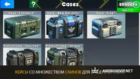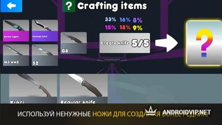 С самого начала, вы сможете открыть несколько первоначальных кейсов, получить ваши первые ножи и остальные предметы. Каждая моделька абсолютно идентична оригинальным версиям, которые вы сможете подержать в руках и даже испытать. Со временем, у вас наберётся целая коллекция ножей, с чем можно будет поделиться с друзьями, или же попробовать каждую из них. К тому же, помимо открывания кейсов, здесь предстоит проходить уровни, где нужно скользить по рампам и избегать препятствия.