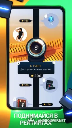 За прохождение каждой музыкальной композиции вы будете получать очки. Ваша задача - набрать достаточное количество очков, чтобы получить за музыкальный трек пять звёзд. Повышайте свой ранг и разблокируйте новые хиты, а так же открывайте сундуки, которые дают карты жанров песен. Качественный звук, песни разной сложности, таблица лидеров среди всех игроков сделают геймплей по-настоящему интересным и увлекательным.
