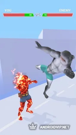 В конце каждой трассы вас ждёт встреча с другим супергером, с котором нужно будет сразиться. Чем успешнее вы прокачаете и трансформируете своего героя, тем больше шансов на победу. По мере прохождения уровней вам будут открываться новые элементы, скины для героев и даже появится возможность комбинировать различные стихии, чтобы создать по-настоящему непобедимого бойца.