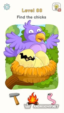 В игре реализовано более 100 уровней и во всех представлены уникальные мини-истории с качественной мультяшной рисовкой, которые заставят вас не только напрячь свои извилины, но и повеселиться. Если возникнут какие-либо сложности у вас всегда будет возможность воспользоваться подсказкой, поэтому при прохождении можно как следует расслабиться и никуда не торопиться.