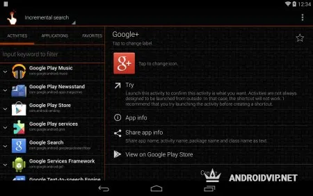 Для того, чтобы поменять иконку любого приложения или даже игры, нужно всего лишь запустить эту программу, найти при помощи встроенного поисковика нужное вам приложение и подобрать из довольно большого списка ярлыков наиболее подходящий вам. Такой процесс можно произвести с любым уже установленным приложением на вашем устройстве. Также, поисковик можно использовать просто для поиска нужной вам программы или игры.