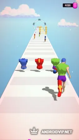Старайтесь собирать только части нужного персонажа и избегать элементы других героев, иначе добраться до финиша будет довольно сложно. В конце каждой трассы вам предстоит сразиться с не менее сильным и мощным врагом. Для этого кликайте по экрану как можно чаще и постарайтесь нанести врагу как можно более весомый урон, ведь именно от этого зависит выигрышный бонус.