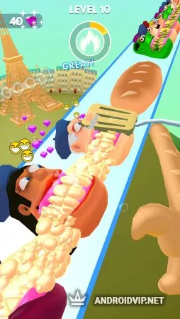 Со временем сложность прохождения будет увеличиваться, даже появятся различные препятствия в виде стен, а также увеличится количество существ. Также, есть возможность поменять щётку на другую, более массивную, или же вообще приобрести валик для большей эффективности. А в конце каждого этапа вас ждёт бонус, где предстоит очистить зубы ещё одному клиент, и получить дополнительные очки!