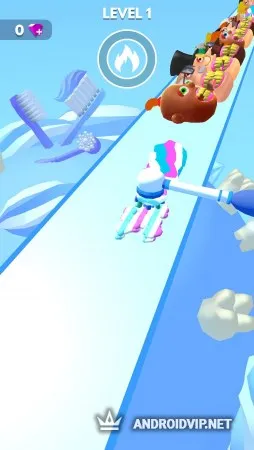 На каждом уровне понадобится преодолевать своеобразную трассу, на которой расположены огромные лица людей и не только, ожидающие что им почистят зубы. Как раз для этого в вашем распоряжении есть большая зубная щётка, и размазанные по пути зубные пасты и другие вещества, напоминающие гряз, лаву, краску и многое другое. Вам же нужно определить что нужно вашему клиенту, и тщательно пройтись по его зубам щёткой.