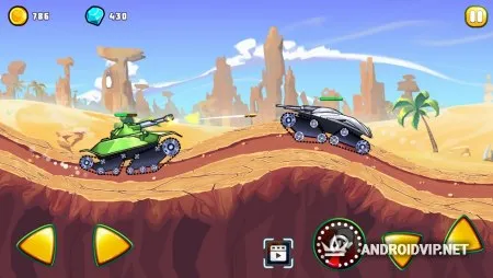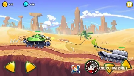 Среди карт есть такие локации как поле, пустыня и лес. За каждый успешно пройденный уровень вы будете получать оценку до трёх звёзд и конечно же денежную награду. Используйте заработанные средства, чтобы прокачивать свою технику улучшая различные характеристики. Прокачивайте определённый танк или же равномерно распределяйте очки между всей своей боевой техникой.