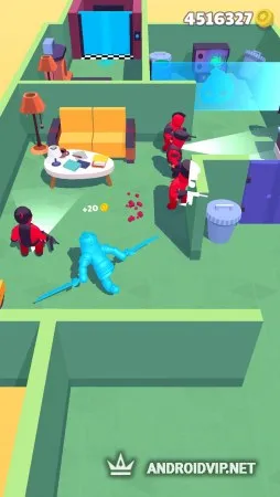 Передвигайтесь по экрану управляя героем при помощи джойстика. Предметы, в которые можно вселиться, подсвечиваются синим контуром. Вы можете трансформироваться в них, чтобы спрятаться от врагов или же атаковать вселившись в подходящий для этого объект. Помимо трансформации у вас будет возможность задействовать в прохождении телевизоры-телепорты, которые переместят вас в другую комнату, а так же находить золотые ключи, чтобы открыть запертые двери.