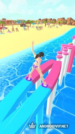 Все трассы проходят прямо над водой, поэтому будьте аккуратны и старайтесь вовремя менять ноги наступая на платформы, чтобы не упасть в воду. Не забывайте так же собирать в пути бриллианты, которые можно будет потратить на покупки в магазине. Перед каждым уровнем можно открыть бонус в виде запасной жизни, увеличения скорости и других усилений, которые помогут в прохождении.