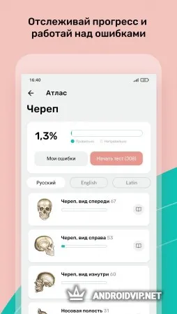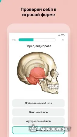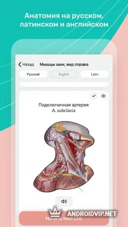 Здесь собрано более 10 тысяч флэш-карточек по анатомии с детализированными иллюстрациями, описанием и озвучкой, в том числе и на латинском языке. Читайте статьи, изучайте конспекты, запоминайте полученную информацию и проверяйте себя при помощи специальных тестов для самоподготовки, которые помогут проверить ваши знания и закрепить изученный материал. Отслеживайте свой прогресс, работайте над ошибками и обучайтесь быстро и эффективно.